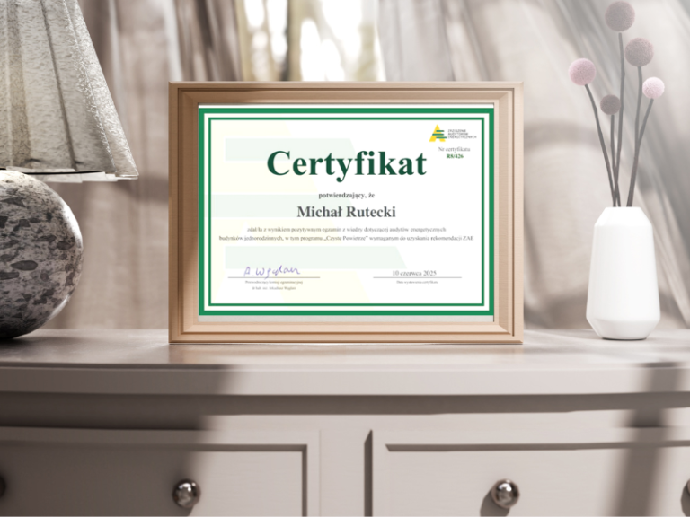Świetne wieści! Z przyjemnością informujemy, że Michał Rutecki, główny specjalista firmy Ruterm w dziedzinie audytów energetycznych uzyskał rekomendację ZAE w zakresie prowadzenia audytów energetycznych budynków